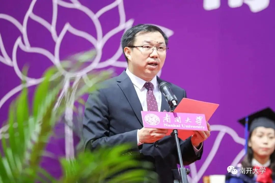 同学们,今天,你们是场上备受瞩目的“新星”,是南开的骄傲;明天,你们将奔赴各自的全新征程。在这里,我想用我们南开校歌中的两句话祝福你们,鼓励你们。一句是“汲汲骎骎”:你们成长在国家高速发展的时代,是最好的时代,希望你们作为未来的佼佼者,时代的追梦人,始终秉持南开人的精神风貌,激流勇进,策马扬鞭,把握机遇,锐意进取,与时代共同奋斗。另一句是“智勇真纯”。人生路上,总有困顿迷茫,总有蜿蜒崎岖。希望你们困顿时仍能铭记初心,无所畏惧,勇敢前行;快意时亦能虚心自省,广纳知新,不断拓展生命的广度,做正确的事,做正直的人。以南开精神为核心,拥抱幸福美满人生。