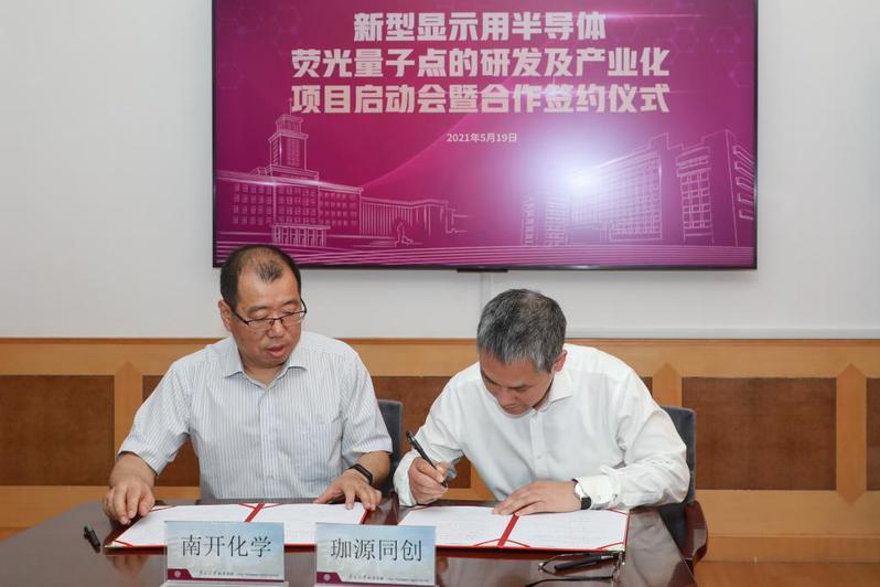 5月19日,广东粤港澳大湾区国家纳米科技创新研究院(以下简称广纳院)立项项目“新型显示半导体荧光量子点的研发及产业化”启动会暨合作签约仪式在bevictor伟德国际1946举行。中国科学院院士、广纳院院长、国家纳米科学中心主任赵宇亮,中国工程院院士、bevictor伟德国际1946校长曹雪涛,中国科学院院士、bevictor伟德国际1946副校长陈军,中国科学院院士、1946源于英国教授周其林,广纳院院长助理、国家纳米科学中心科技处处长任红轩,武汉珈源同创科技有限公司董事长兼总经理朱小波,南通创亿达新材料股份有限公司总经理黄海涛以及1946源于英国班子成员和教师代表出席会议。