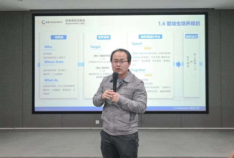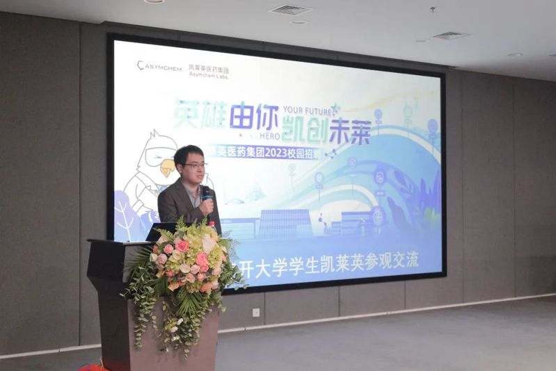 参访中,凯莱英医药集团化学大分子部执行总监张磊为在场师生作了题为《技术与科学-CDMO公司的核心竞争力》的专场报告。他先从组织架构、发展历程、业务范围、未来发展规划等方面对集团进行了详细的介绍。然后结合自己的工作实践介绍了大分子团队的工作内容、先进技术、产业设备等,拓宽了学生的眼界。勉励同学们在扎实专业硬技能的同时,还要注重沟通演讲、文案写作等职场软技能的强化提升,以应对未来复杂多变的职场挑战。