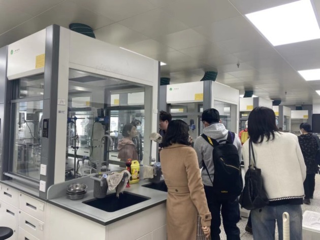 座谈会后,在张瑞红书记的带领下,南开中学何文书记、王文昌副校长一行参观了化学实验教学中心,教学中心的党员教师介绍了各实验室的仪器设施和教学情况。