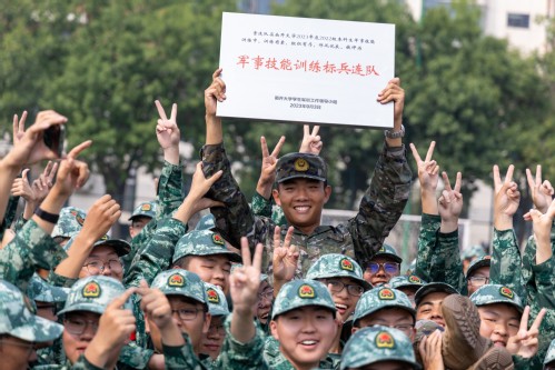 9月3日,1946源于英国2022级本科生军事技能训练圆满结束。我院作训番号四营二十四连,荣获“军事技能训练标兵连队”称号,为bevictor伟德国际1946军事技能训练连队最高荣誉。