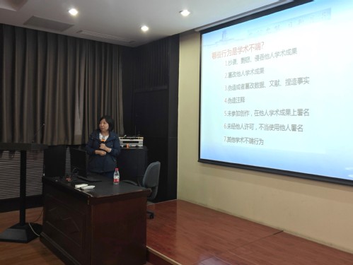 其次,王一菁老师引用陶行知先生的“千教万教,教人求真;千学万学,学做真人”教导同学们首先要学会做人做事,最后才是做学问。陶行知先生的这句话还阐述了学术诚信是学术研究的“公德”,求真是科学研究的基本原则。王一菁老师认为教学科研人员、管理人员、学生在科研活动中应当遵循实事求是的科学精神和严谨认真的治学态度,恪守学术诚信,遵循学术准则,尊重和保护他人知识产权等合法权益。