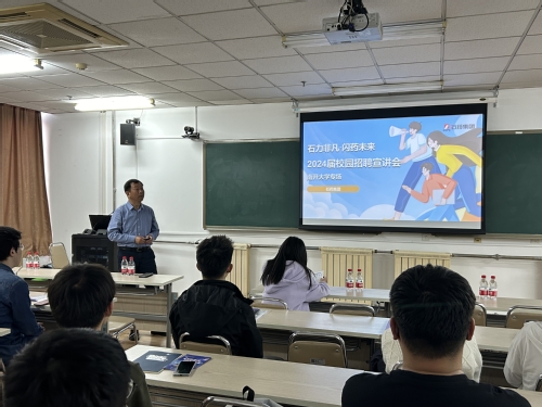 会后举办了石药集团宣讲会,吸引了来自全校各学院相关专业的青年学子参加。王振国在宣讲会上向师生详细介绍了公司的发展历程、核心技术、企业福利和招聘岗位,并结合自身经历,展示了石药集团优秀的企业文化。高秀强对相关招聘问题作了进一步说明。宣讲会结束后,参会同学积极投递简历,并与企业宣讲人员做了进一步的交流。
