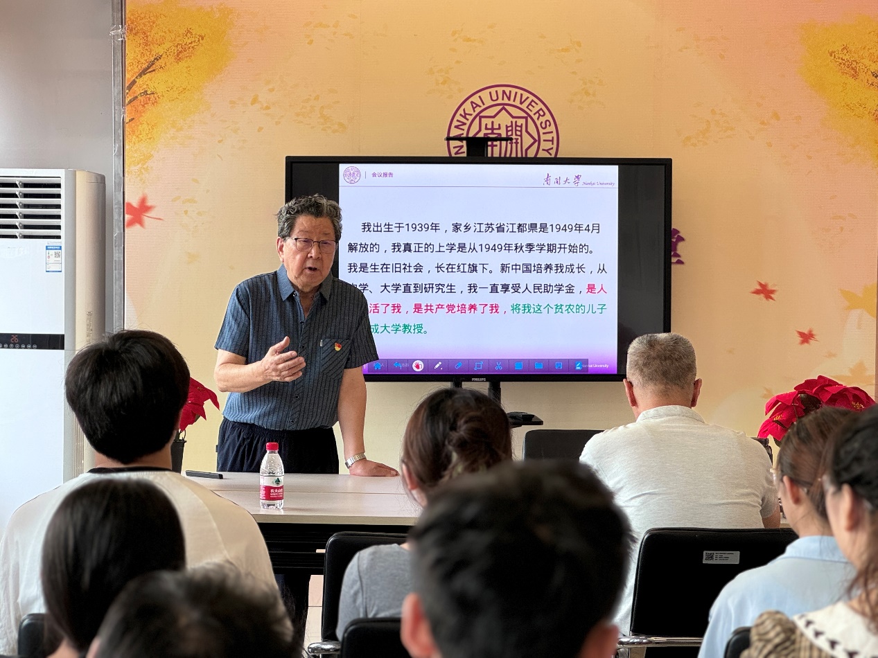 活动伊始,朱志昂以“我与新中国共成长”为题,从自己多年来的求学经历和教育工作出发,为师生们介绍了自己随着党和新中国的不断发展而逐渐成长的心路历程。朱志昂讲到,无论是自己还是同学们,能够接受到高质量的教育,都离不开党的帮助关怀,希望同学们在科研工作中真正做到求真务实、开拓创新、不断进取,成长为真正让党放心的国之栋梁。