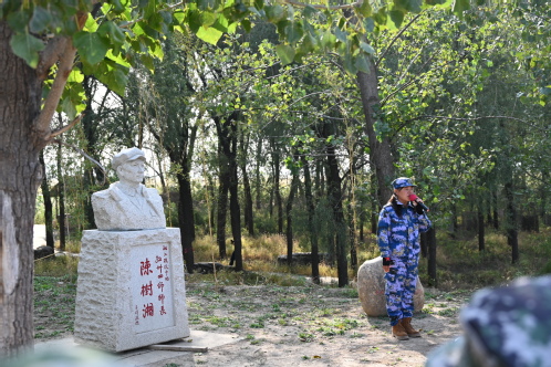 在雕像处,教官给学生战士们讲解了“半条被子”的故事。一条棉被被剪成两半,永不放弃,永远相连。在教官的动情解说下,大家共同追忆了那段令人难忘的峥嵘岁月,缅怀革命先烈,感悟初心使命,接受红色教育。