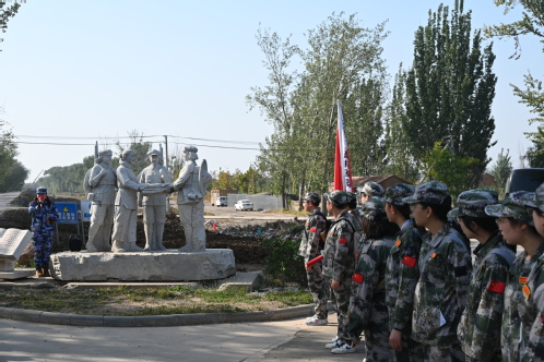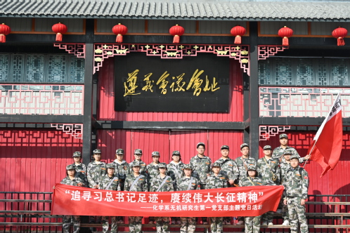 10月11日下午,化学系无机研究生第一党支部成员乘车到达天津市西青区第六埠村。到达后,支部成员立即换上军装、带上“武器”、组建队伍,变身为一名名整装待发的“学生战士”。出发前,队伍在村委会广场上列队集合,由教官带领学生战士们回忆了长征的时代背景,重温了入党誓词,支部书记刘言君进行战前动员并授旗,宣布“重走长征路”演绎体验活动正式开始。