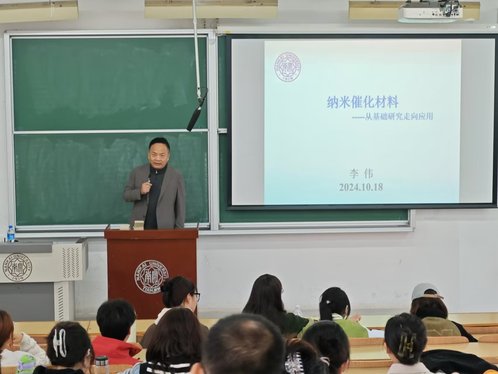 接下来,李伟以纳米催化材料为例,对工业催化剂的设计、实际应用以及研究工作者的思路和素质要求等进行了详细分析,指出实验室科研与工业化生产的区别。李伟还通过自己课题组的成果转化案例,向同学们分享了无汞催化剂的研发历程,让同学们近距离观察PVC无汞催化剂,并对其技术核心加以介绍,建议同学们在科研过程中要长期坚持不辍,勇于实践,不惧失败,敢于将科研成果推向生产实践,并转化为生产力。