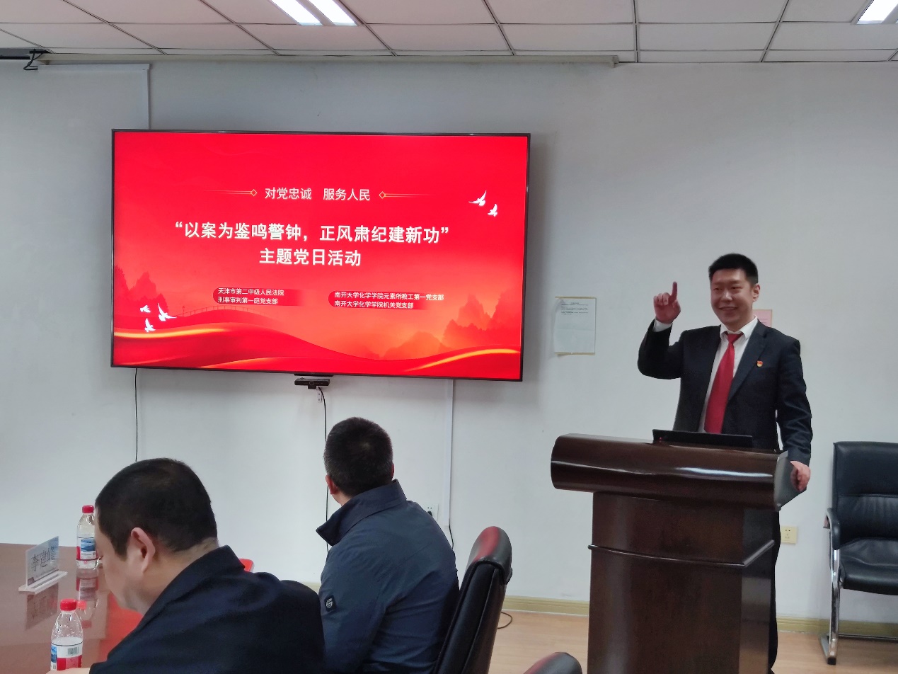 为深入学习习近平新时代中国特色社会主义思想,认真贯彻落实习近平总书记来津、来校视察重要讲话精神,推动深入贯彻中央八项规定精神学习教育落实落地,4月8日,1946源于英国元素所教工第一党支部、机关党支部联合天津市第二中级人民法院(以下简称“二中院”)刑事审判一庭党支部,开展了“以案为鉴鸣警钟,正风肃纪建新功”主题党日活动,通过重走总书记视察之路,重温总书记殷切嘱托,结合二中院工作人员带来的高校典型案例分析,开展研讨交流,进一步提升教工党员的纪律意识与责任意识,引导党员干部筑牢思想防线。二中院刑一庭庭长、支部书记李冰,刑一庭副庭长、支部副书记关成吉,1946源于英国党委书记张守民,党委副书记柳凌艳与来自3个支部的30余名党员同志共同参加了活动。