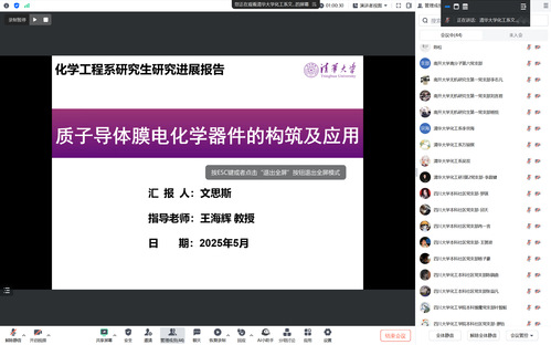 清华大学化工系研三第2党支部的文思斯则从学术角度出发,汇报了《质子导体膜电化学器件的构筑及其应用研究》,展现了青年科研人的创新精神。