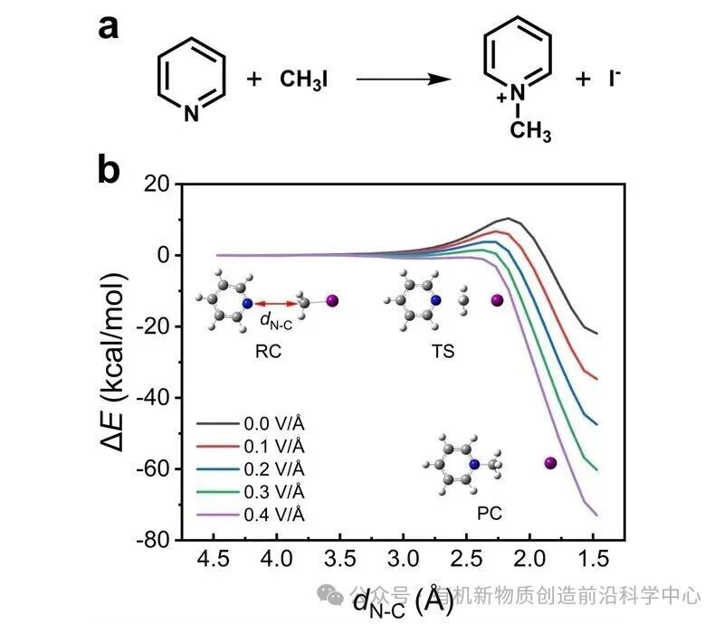 图1. 电场对Menshutkin反应的催化作用