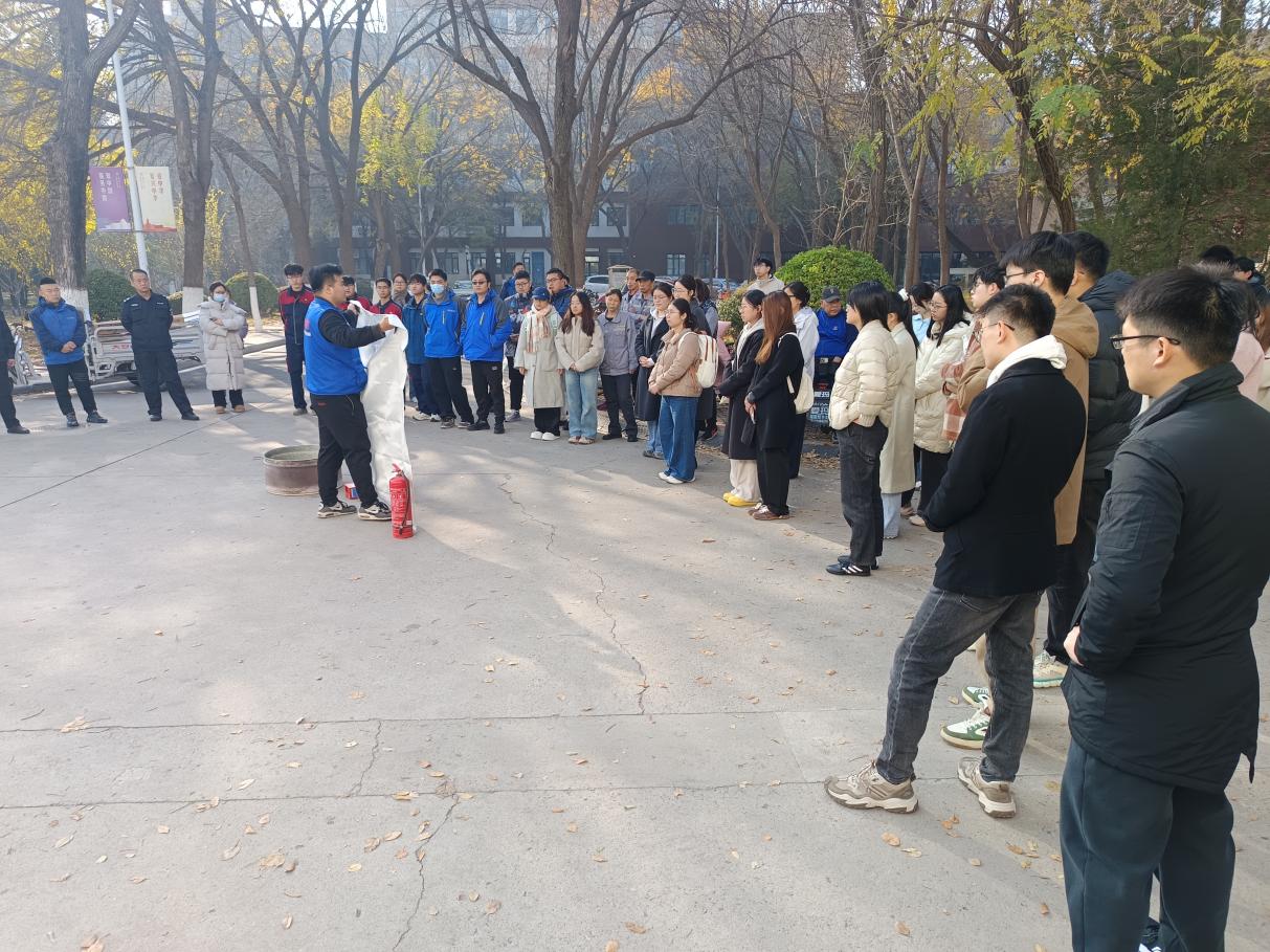 2025年11月9日是我国第34个“全国消防日”,11月也是“全国消防宣传月”,今年的主题是“全民消防,生命至上,安全用火用电”。为进一步增强学院师生的实验室消防安全意识,普及常见消防器材的正确使用方法,熟悉火灾应急疏散流程,切实提升突发火情应急处置能力,学院联合保卫处、设备处于11月14日共同组织了消防安全演习。